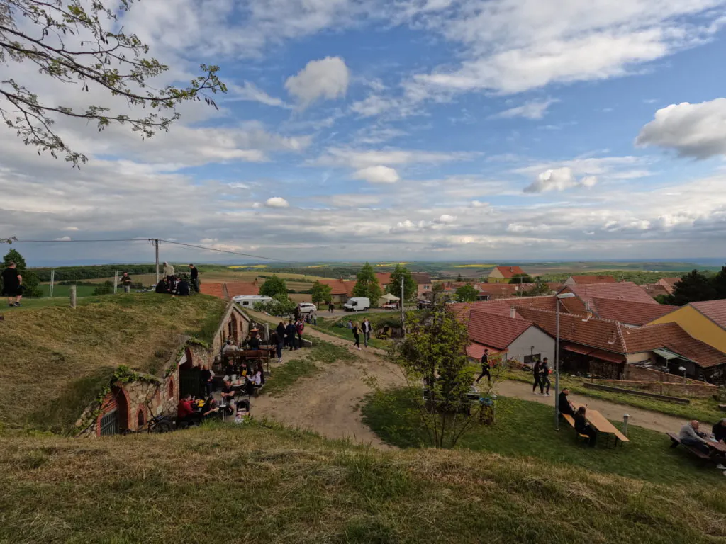Ďalej sme pokračovali k Vínnym sklepom, ktoré sú v dedinke Vrbice. Od kapličky je to asi 6km, po označenej cyklotrase – ceste medzi vinohradmi a poľami. Užili sme si nádherné scenérie. V dedinke Vrbice nás čakalo prekvapenie a to, prebiehajúca ochutnávka vína – cesta od sklepu k sklepu. Atmosféra tam bola naozaj veselá, miestami sme sa až cítili ako na inej planéte. U nás na Slovensku sú tieto podujatia podľa mojej skúsenosti oveľa kľudnejšie. Povedali sme si, že sem v budúcnosti určite takúto ochutnávku musíme prísť zažiť.