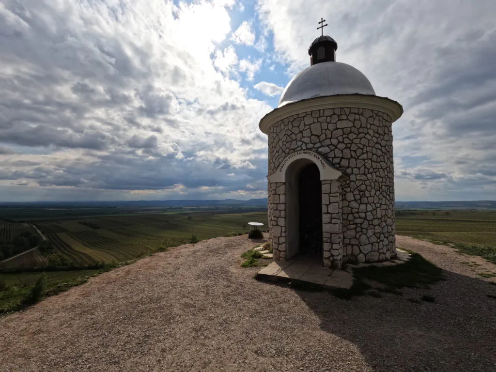 Ako dobre, že sme si zbalili aspoň tie. Prefrčali sme vinohradmi, hlavy vykrúcajúc napravo aj naľavo. Všade kde oko dovidelo samý vinič. Na odporúčanie domáceho sme sa vybrali ku kapličce a vínnym sklepom, známym z filmu Bobule. Kaplička je na kopčeku a s nádherným výhľadom, tento zážitok naozaj stál za to.